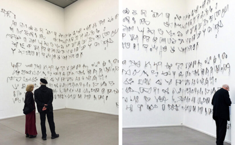 ‘Non-text’ was created through hair patterns on gallery walls giving out signs of non-language, opposing the rules of grammar, diction, vocabulary and syntax...