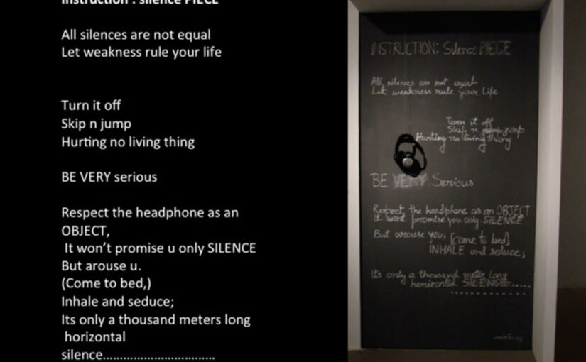 A noise canceling head phone as an object and a hand-written poem were altered into a destination of silence...