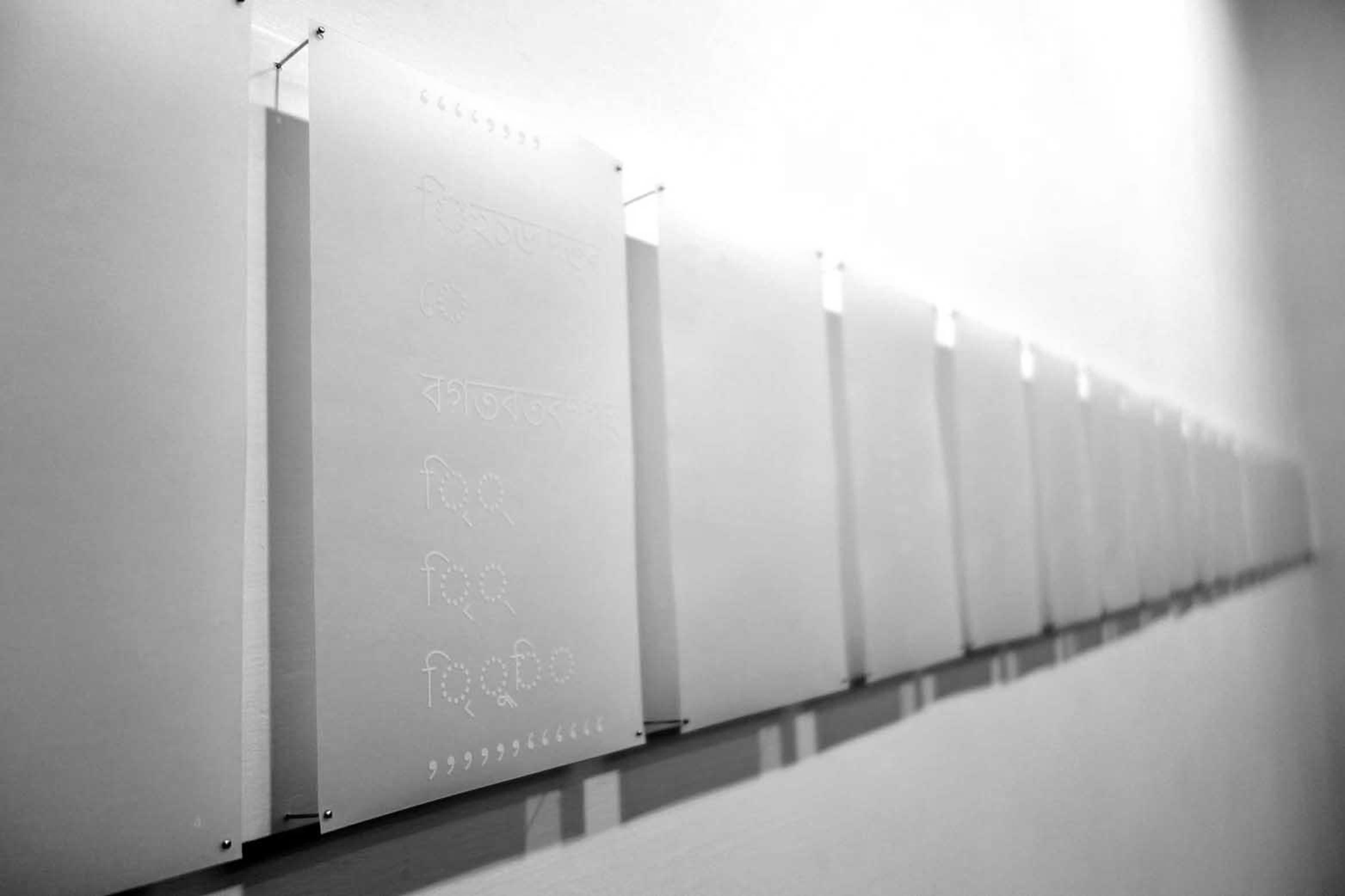 Mithu collects anonymous voices of the audience to create an abstract body of non-sense characters that claims repressed emotional voices and a potential moment of lingual anarchy, a language of the subconscious, a morphed body from a visual to a sonic form. A language: not as rigid and as ‘elite‛ with no hint of humiliation or suppression.