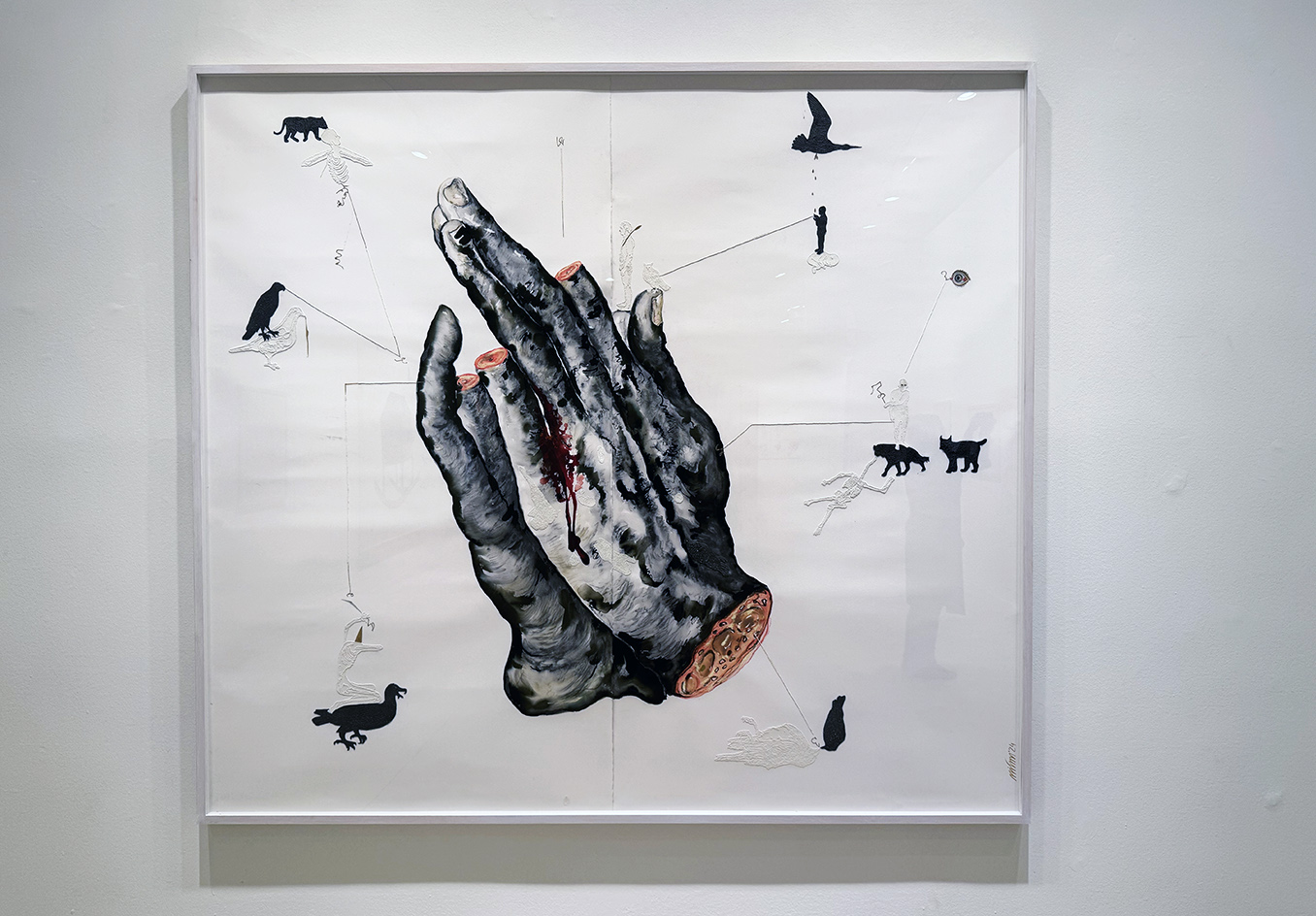 It draws inspiration from Albrecht Dürer's iconic "Praying Hands" (Betende Hände), housed in the Albertina Museum, Vienna.