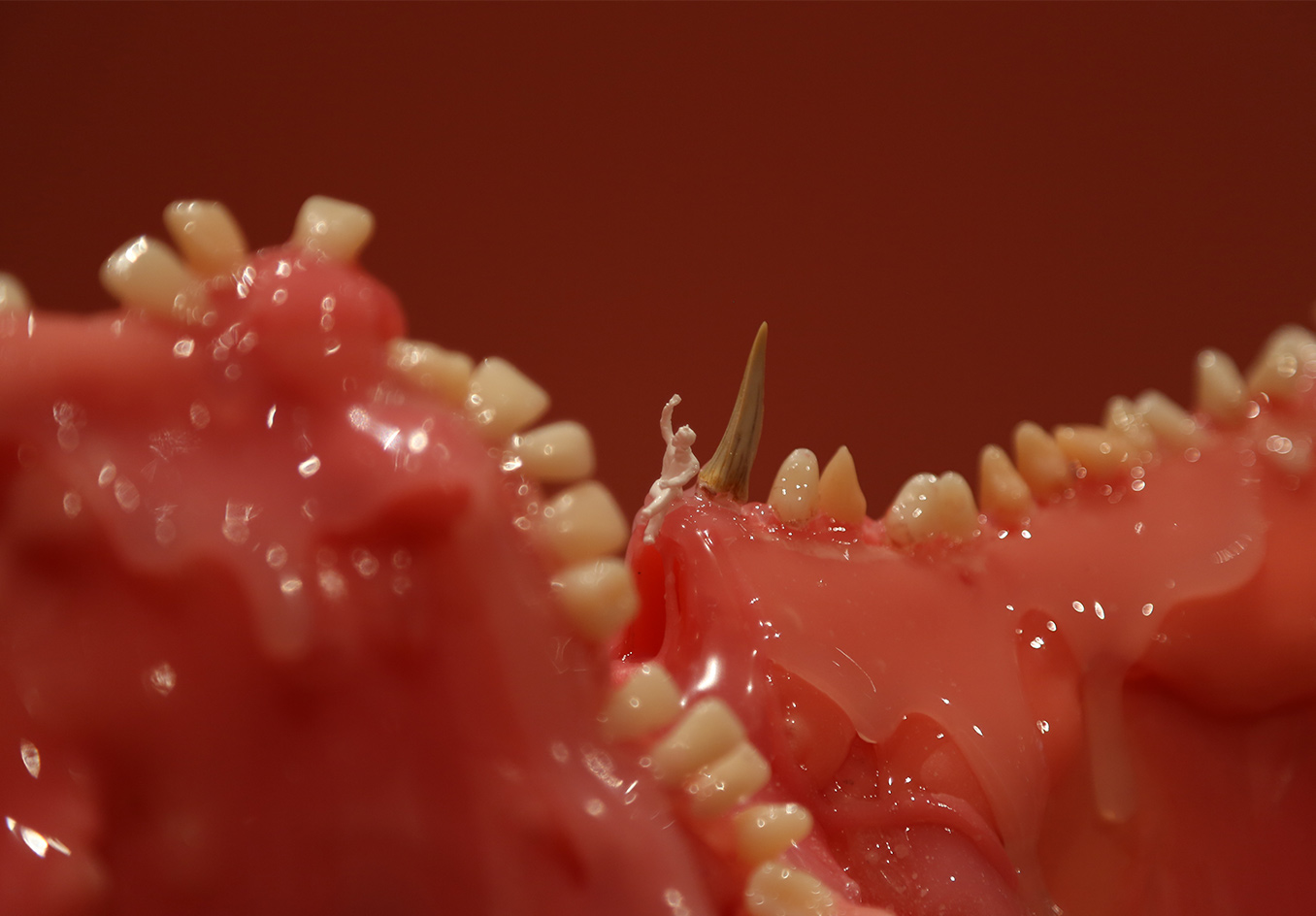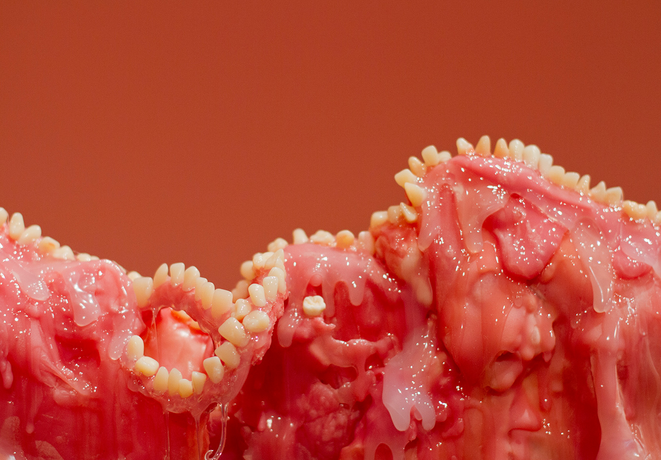 It represents a grotesque idea of an abstract body which compliments and complicates the concrete geometric structure. While referencing art historical dialogues surrounding materiality and minimalism, the sculpture is primed to elicit strong reactions from viewers. This teeth sculpture recalls my other works in similar materiality that elude to the boundary space of the body to elements associated with domesticity. Here, the teeth are not only the guardians of the body’s insides, but also the sanctuary of home.