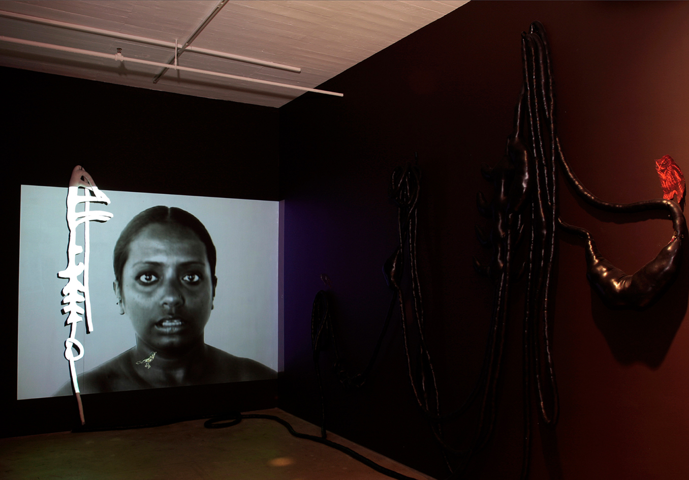 A performative video, filmed focusing on the face, depicting pain/pleasure or suppressed voice from an undisclosed source. The expressions contorting, resisting a voice, leaving much to the viewer’s imagination while being tattooed (a painful process that one desired)