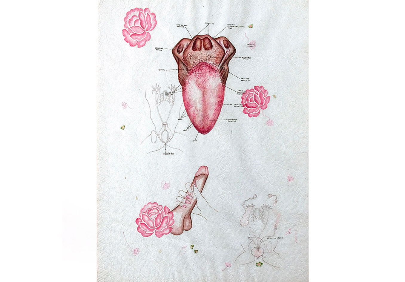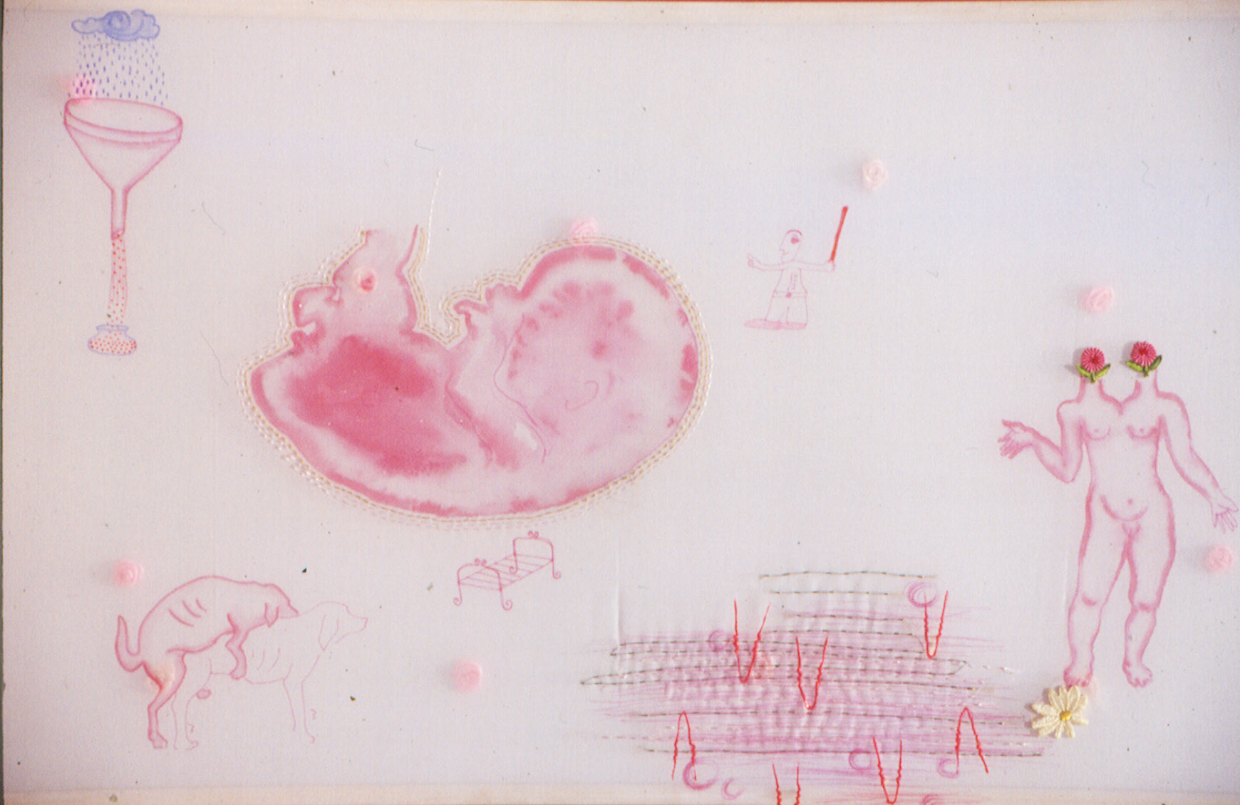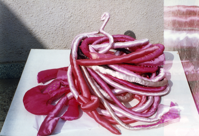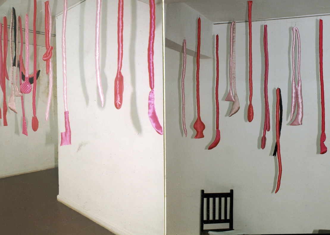 I hate pink(a declamatory statement against the prejudice surrounding the color; pink -- a color coded and euphemized because of its associations to femininity. The tenderness and softness associated with the color all come through the parallel thread of feminization. Against this codification, the formal explorations and experiments in a color that the project undertakes reveal the underlayer of the color pink. Everything in this show was in pink and drawn from the realm of the domestic play-off on the inner violence.