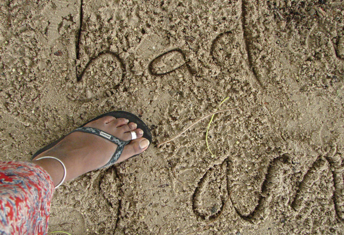 Words, engraved into the sand of the Brazilian beach, were sent to/from a dear friend. On the extended canvas of nature, a drawing of overwhelming emotions and feelings get embedded with the sand grains, staying in the landscape as a secret, never to be disclosed.