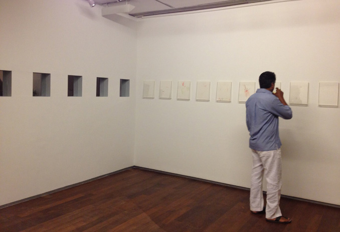 Each displayed artwork appeared like drawings of abstractions in white space, landscapes and other isolated objects. It was only with a play of programmed lights that the engravings on the plexiglas casted shadow on white paper to complete the composition, though only for a moment claiming conceptual non-existing bodies into momentary existence.