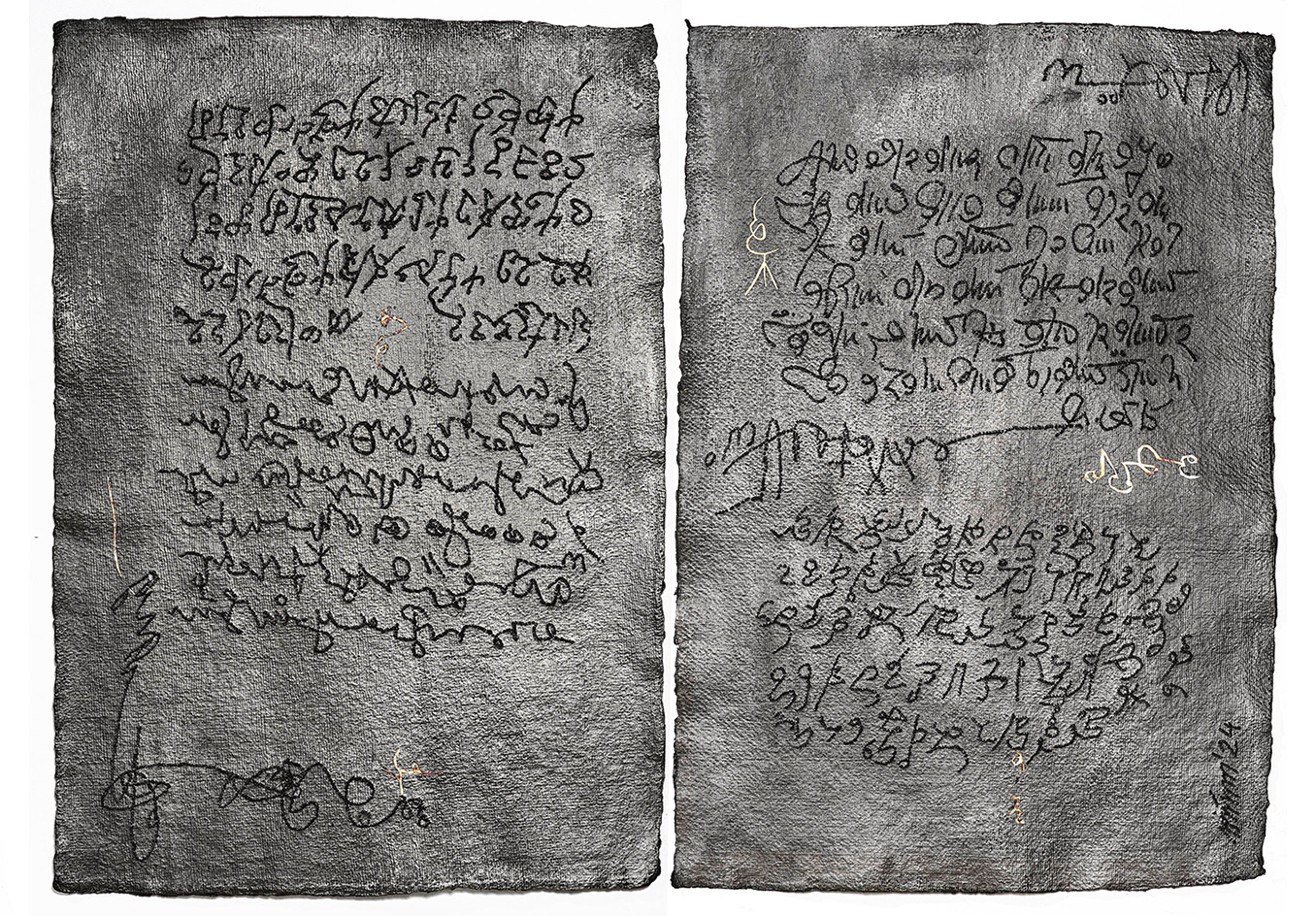 The exhibition frames language, identity, cultural loss, and global politics as incomprehensible poetry, blending internal states of instinct, feeling, sensation, and poetic abstractions. By reproducing an imaginary script through the deconstruction and overwriting of Matoš’s handwritten poems, Mithu Sen creates a ‘cross-cultural exchange’ that alludes to the limits of human communication.