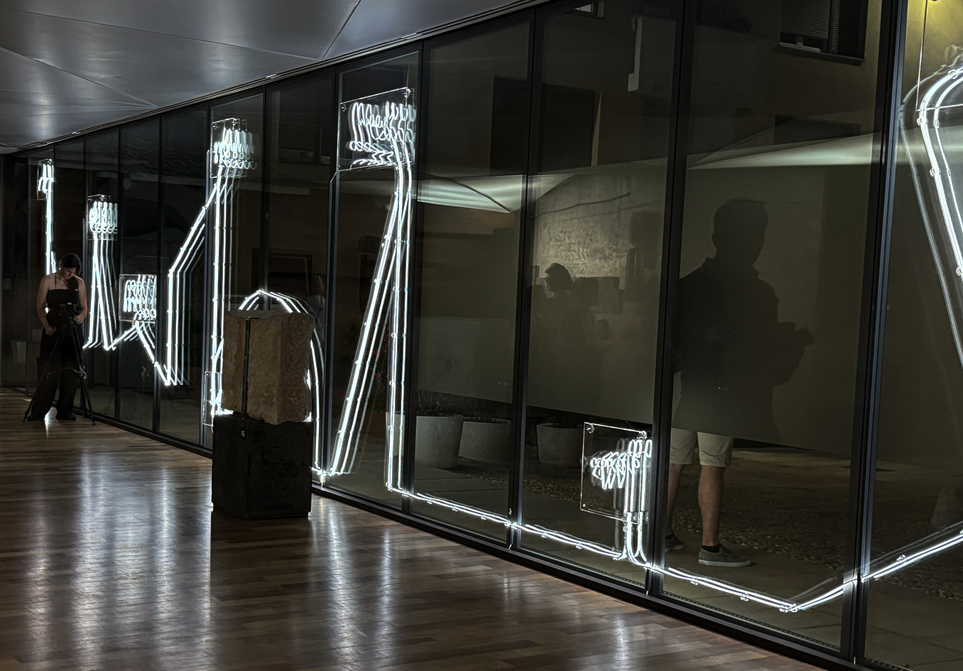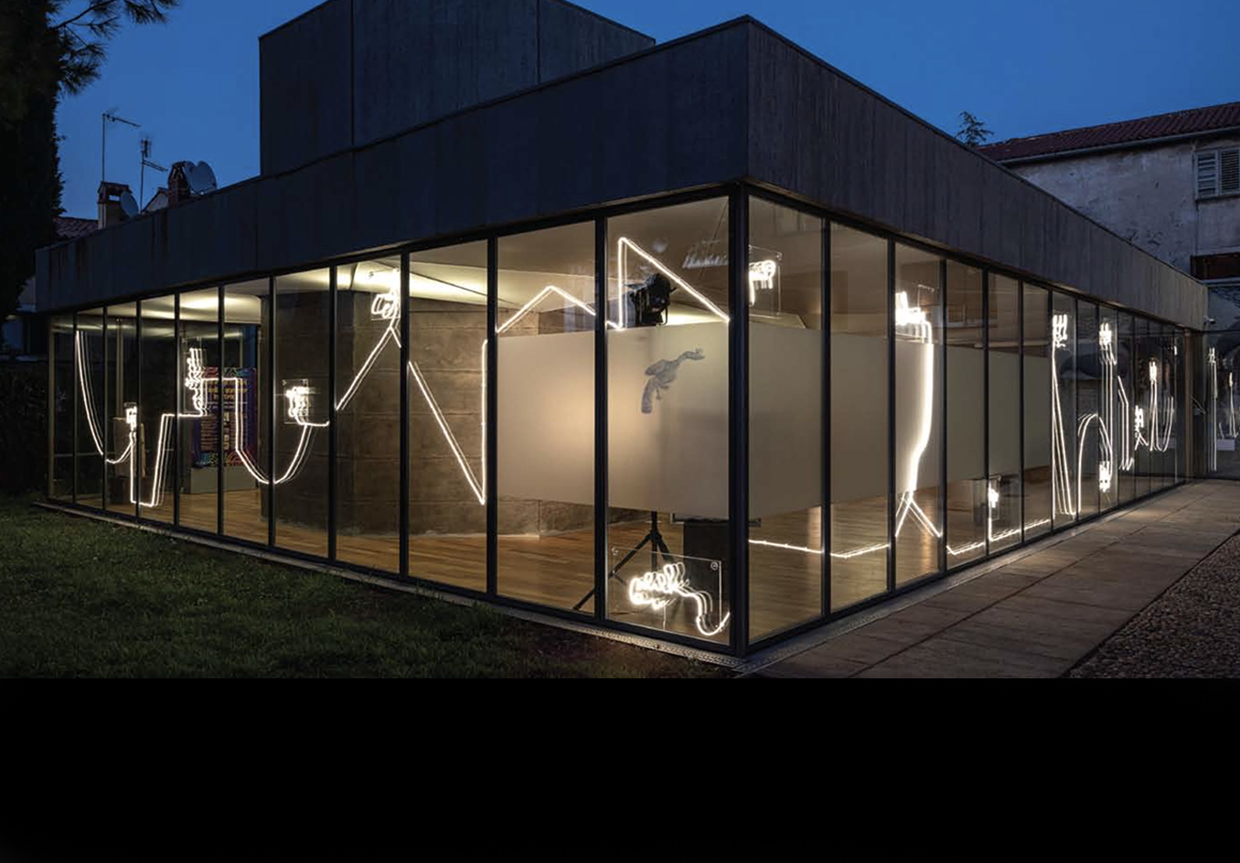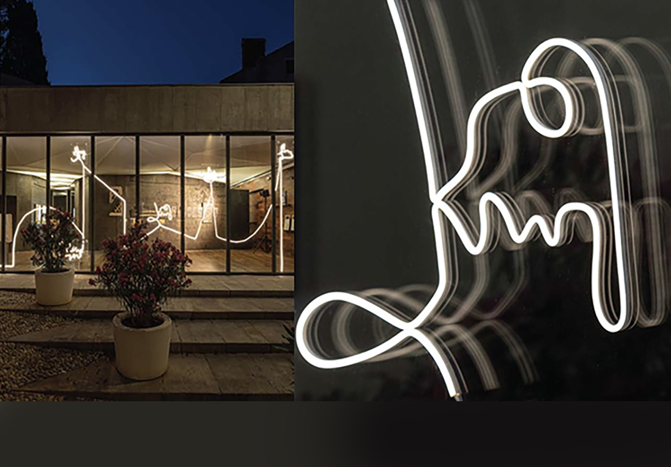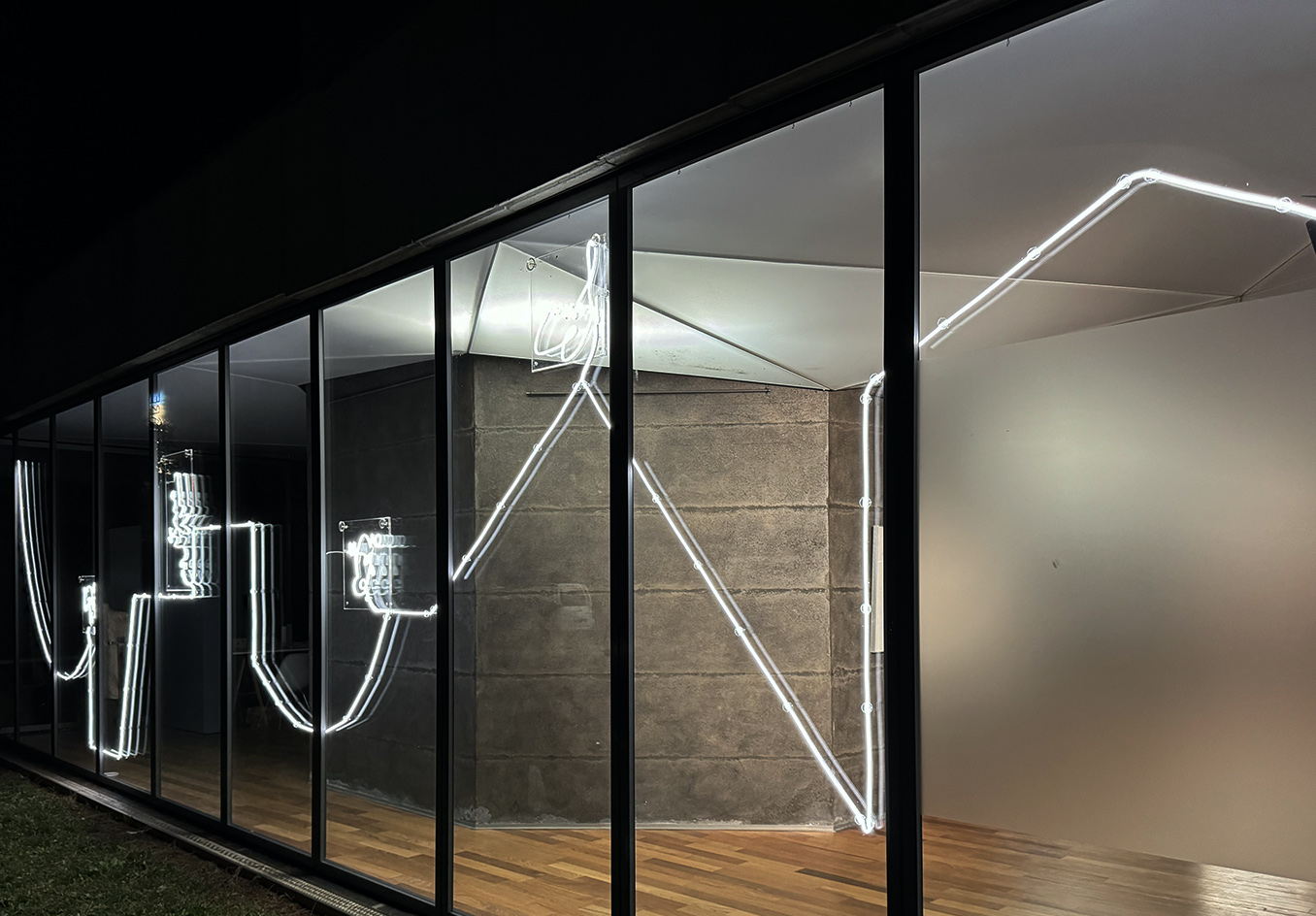 Along with a guided light-line around the museum site, the new light installation interprets an interplay of imaginary words and image associations between visible surfaces and their shadows. It creates an architectonic and poetic form of experimental illuminated visual poetry, guiding the viewer through the space and serving as both luminosity and aesthetic accompaniment.