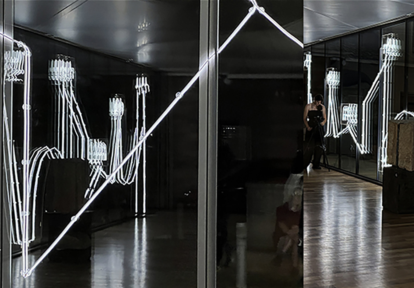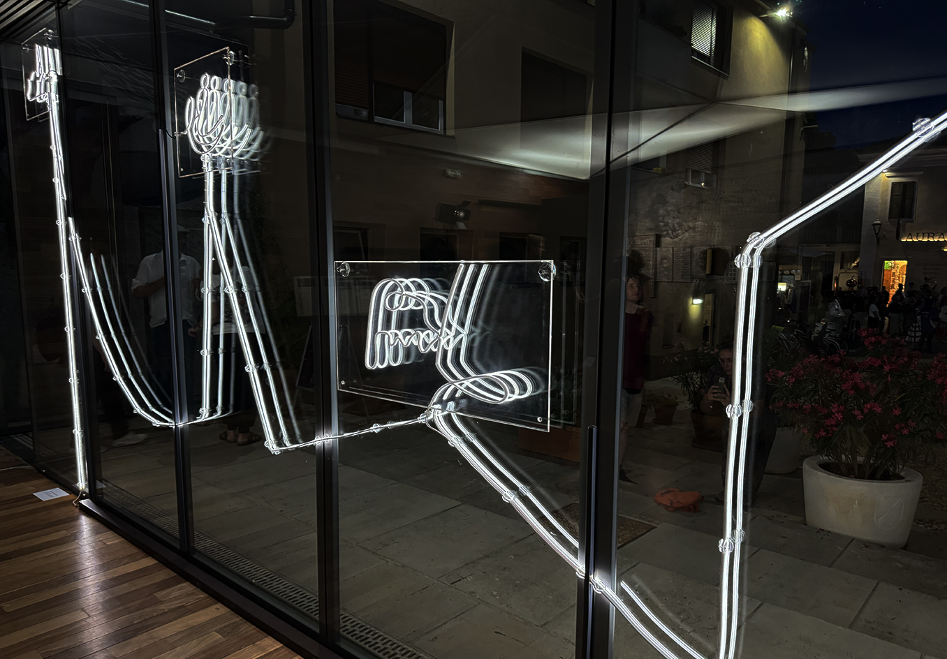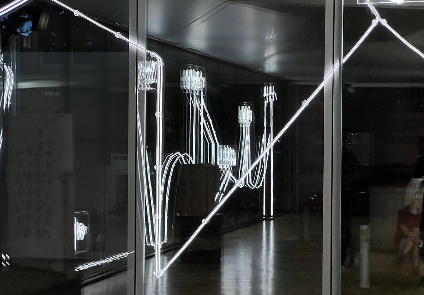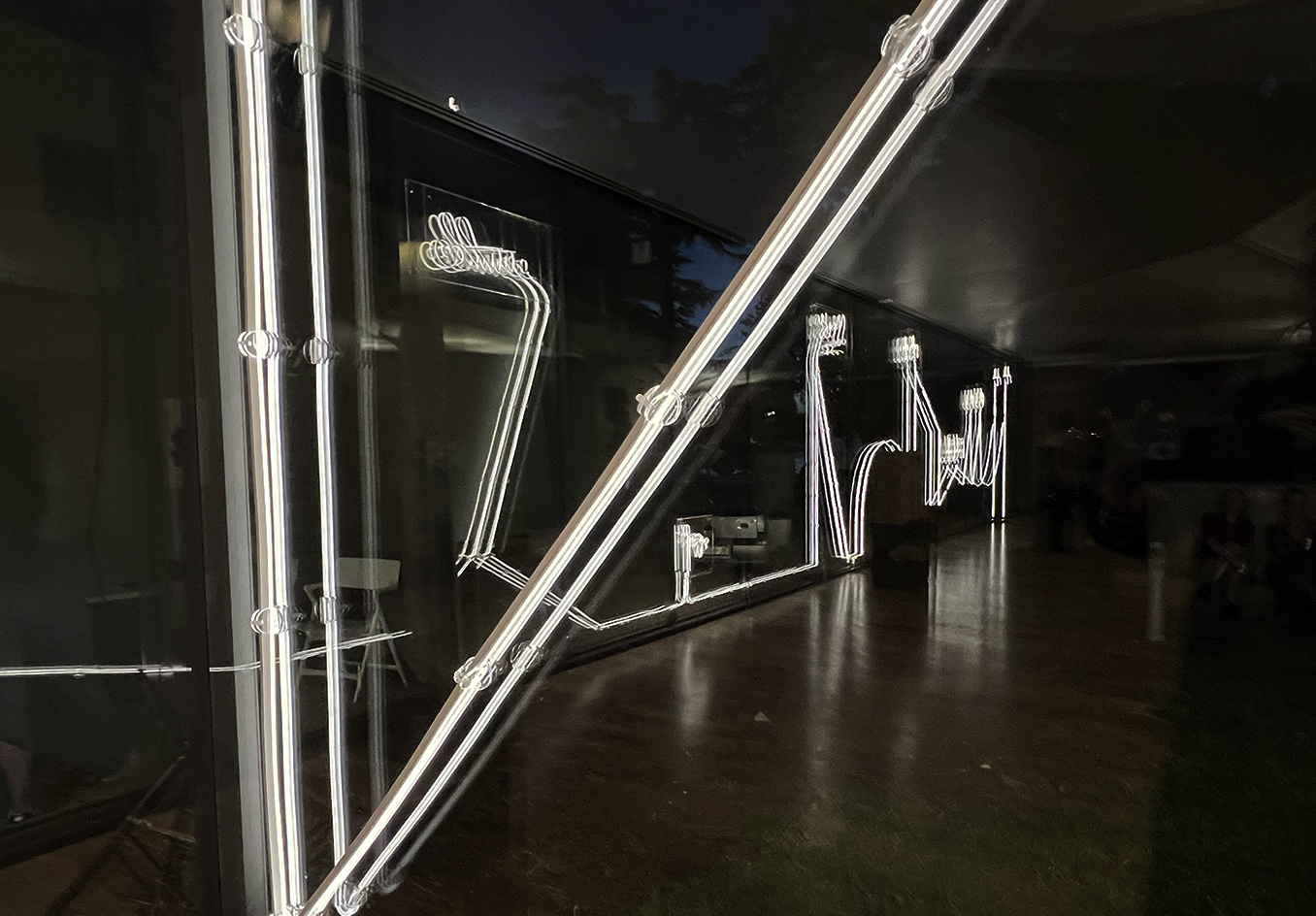 Along with a guided light-line around the museum site, the new light installation interprets an interplay of imaginary words and image associations between visible surfaces and their shadows. It creates an architectonic and poetic form of experimental illuminated visual poetry, guiding the viewer through the space and serving as both luminosity and aesthetic accompaniment.