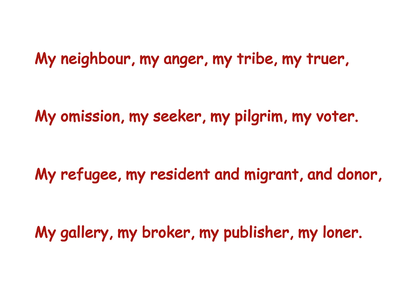 Rather than a fixed list of names, it opens toward a field of relations that can expand, shift, and be revised over time. What begins on the printed page continues beyond it—into a dynamic archive of gratitude, collaboration, memory, and presence.