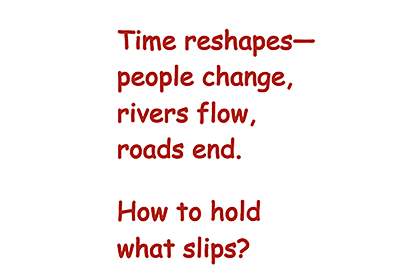 It remains unfinished, porous, and continually becoming.